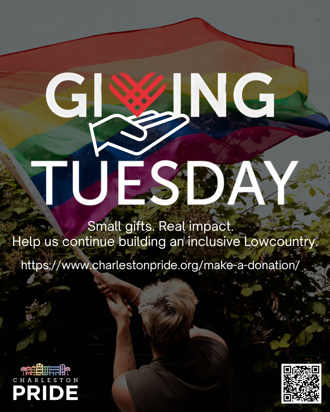 We’re hoping to raise $500 for #givingtuesday, and every donation—big or small—truly makes a difference. It all goes directly toward the programs and outreach that keep Charleston Pride growing.